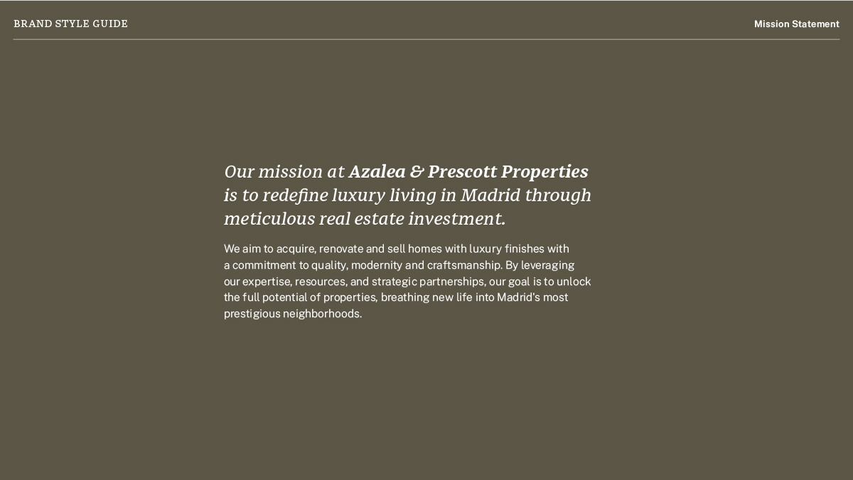We developed a distinctive brand identity for our client, starting with a logo that balances modern simplicity with timeless elegance. An earthy color palette reinforces professionalism and trust—key qualities in their industry. To ensure consistency across all touchpoints, we delivered a comprehensive brand style guide, equipping them with the tools to maintain a strong and cohesive identity for years to come.